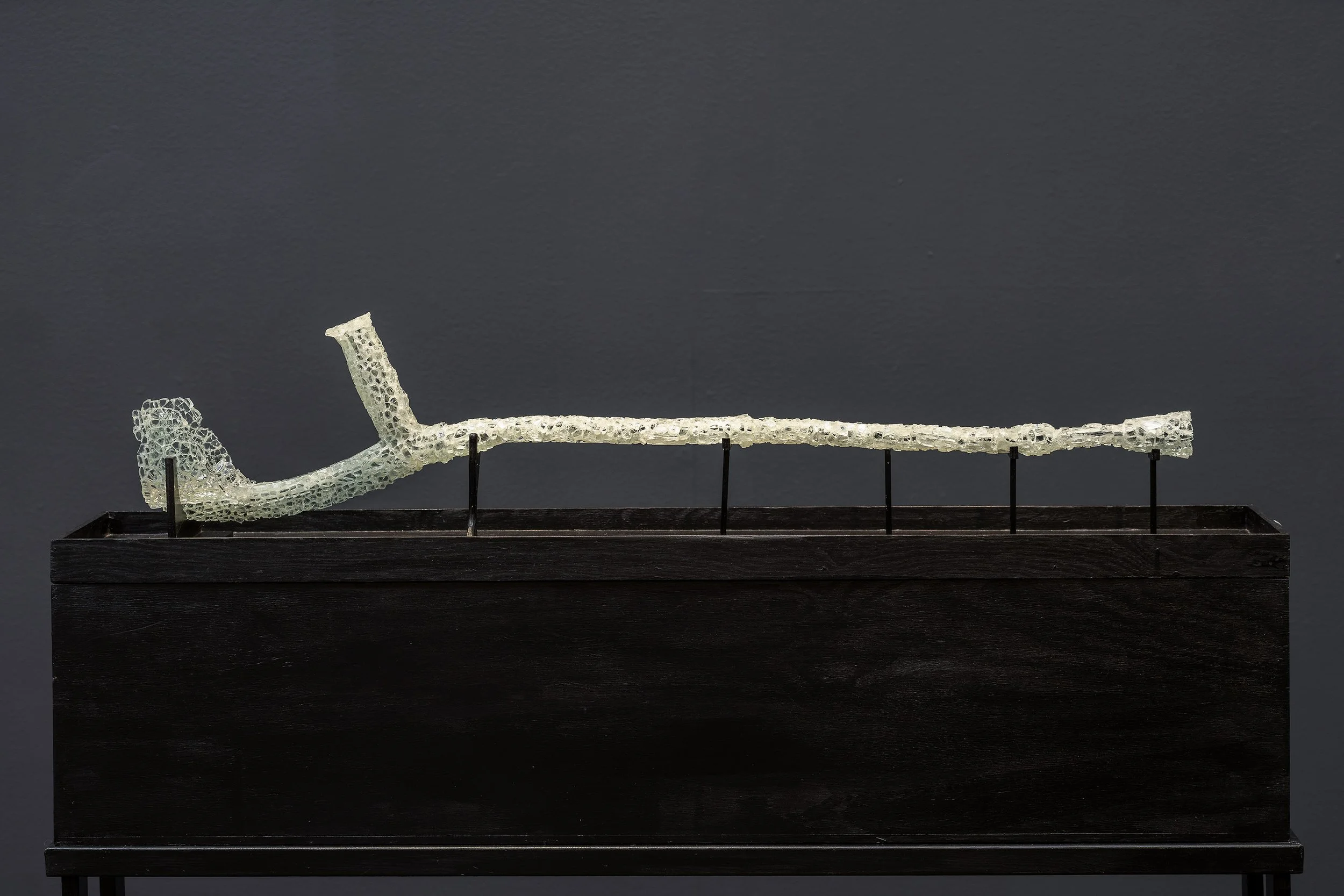 2022, 19× 98×11 cm, crushed safety glass collected from the streets of Gothenburg and silicone.